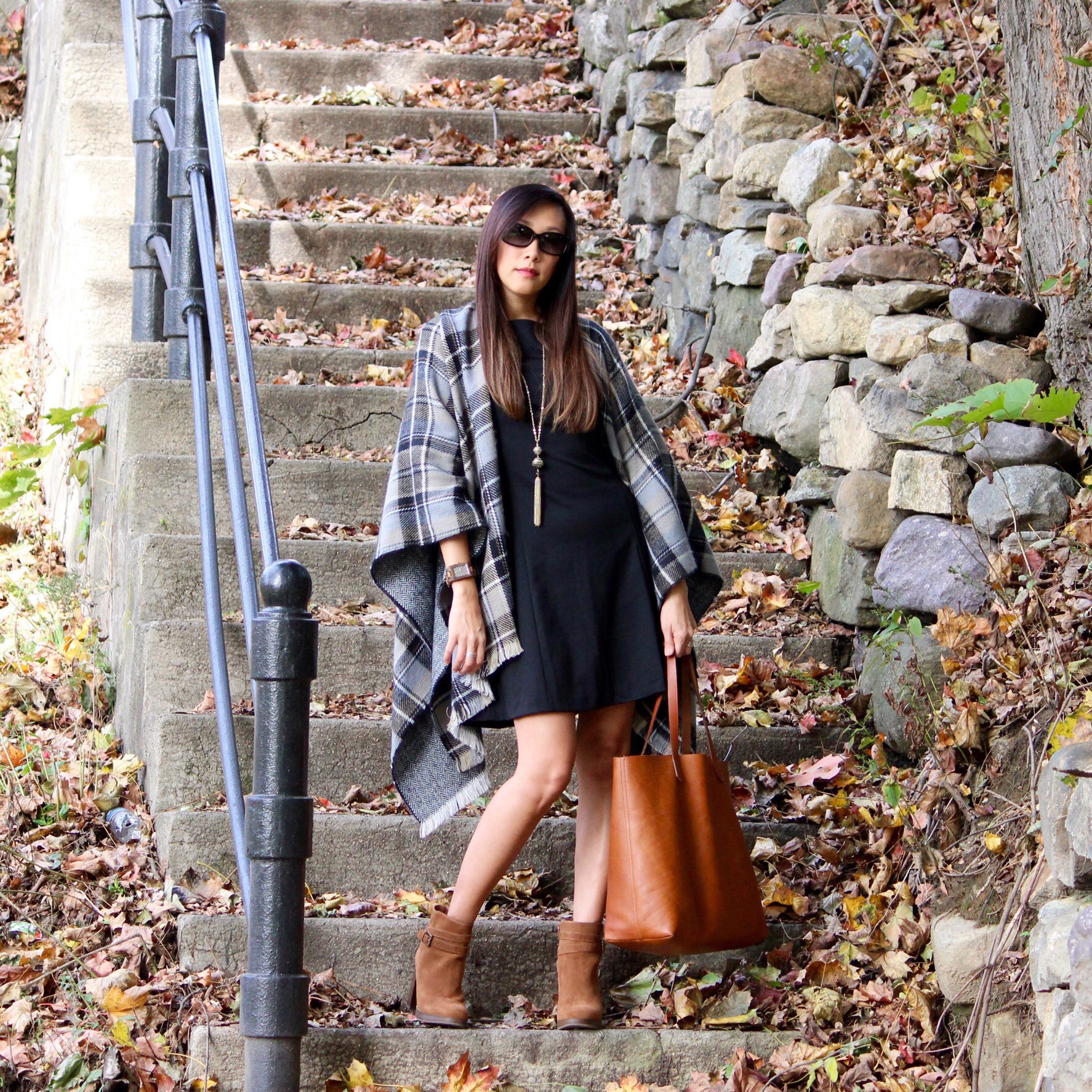 Fall has arrived. The leaves are changing colors and falling to the ground. The days are shorter and colder. Now is the perfect time for layering. I found this plaid cape last year during a quick trip to TJMaxx. I couldn’t leave without it… it’s plaid!